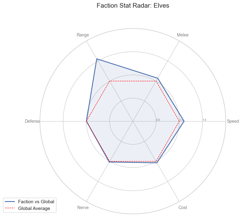 Elves are faster than the field, but they are not tougher than the field. Their identity is reliability, not explosiveness. The army plays best when it controls engagement timing rather than trying to stat-check opponents.