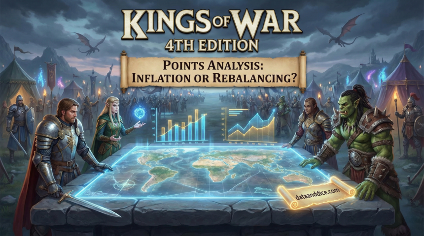 The transition to Kings of War 4th Edition has sparked a rigorous debate within the community regarding “points creep.” Early community estimates—often based on anecdotal list-building or smaller sample sizes—suggested about a 9% increase. However, my expanded analysis of 812 direct unit matches reveals a more significant global inflation rate of 14.9%.