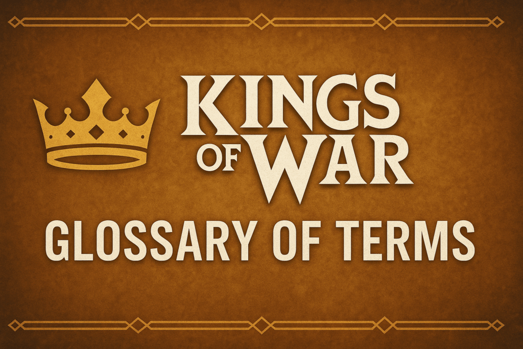 This glossary collects commonly used terms in the Kings of War community. Definitions are based on community sources including Dash28.org,