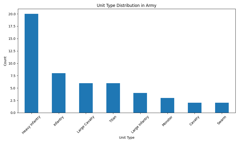 Bar chart illustrating the types of units available in the Salamander roster. Heavy Infantry dominates, reflecting the faction’s core playstyle.